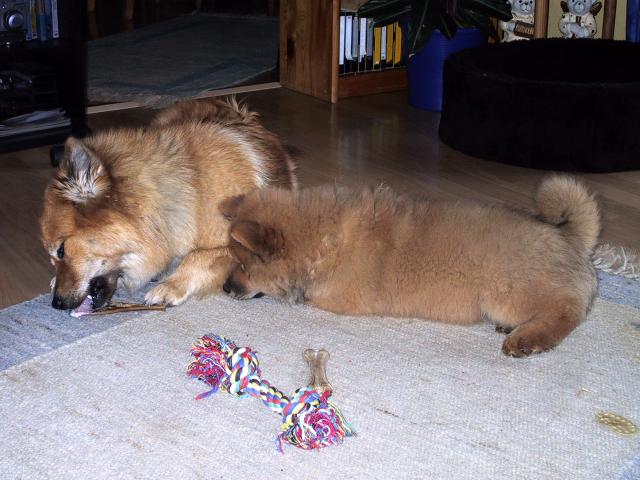 ich hab mich schon ganz toll eingelebt. Daika wird echt zur großen Schwester. Sie passt immer auf mich auf und schützt mich vor den anderen. Dabei kann ich doch schon selbst ganz schön auf mich aufpassen. Aber ärgern kann ich Daika auch schon. Wenn ich ihr ins Bein beiße oder in die Nase, muss ich immer schleunigst Deckung suchen.