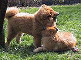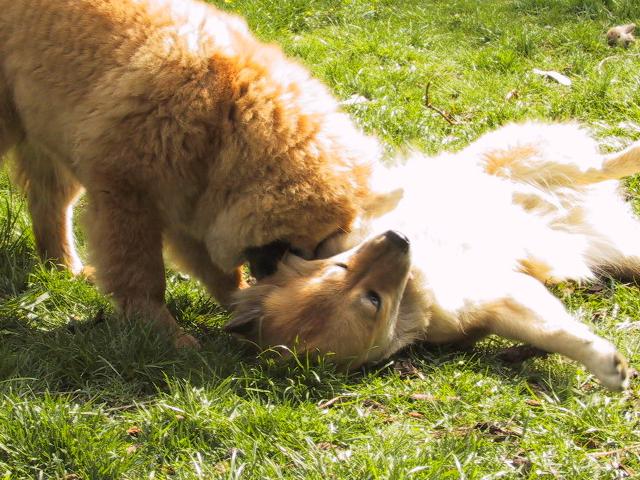 Hurra, ich bin jetzt schon größer als Daika. Da macht das Ärgern noch viel mehr Spaß. So lange sie sich das gefallen lässt.